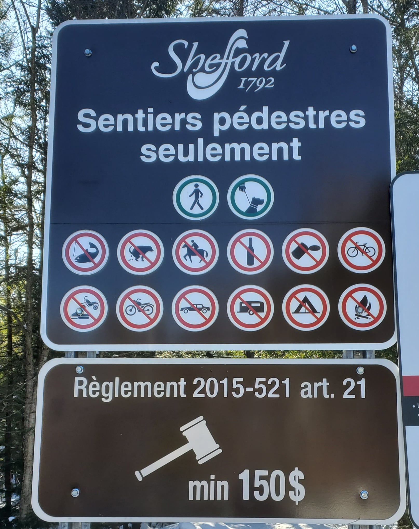 Il faut comprendre qu’aux abords de ce sentier, ce sont des terrains privés et qu’il est interdit d’y circuler. Dernièrement, des gens se sont aventurés sur des terrains privés malgré les indications des Travaux publics.